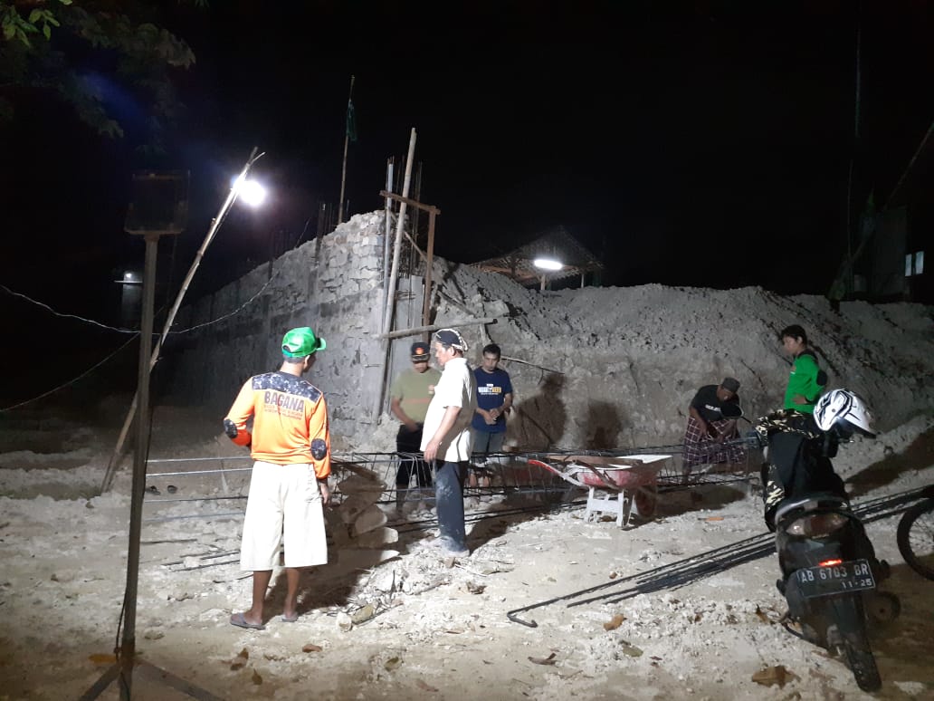 Usai makan bersama, Rabu malam jelang Kamis (6/1/2022) dini hari itu, Kami anggota Banser dan para pengurus MWC NU Kapanewon Pajangan melanjutkan kembali gotong-royong dalam rangka pembangunan gedung NU Pajangan.