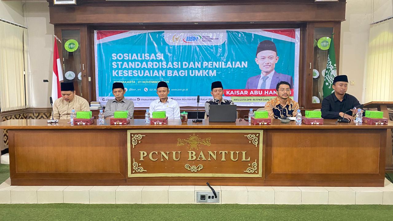 Pengurus Cabang Nahdlatul Ulama (PCNU) Kabupaten Bantul bersama Badan Standardisasi Nasional (BSN) menggelar kegiatan Sosialisasi Standarisasi dan Penilaian Kesesuaian bagi UMKM di Kantor PCNU Bantul, Jalan Marsda Adi Sucipto No.45 Bantul, Sabtu (1/11/2025).