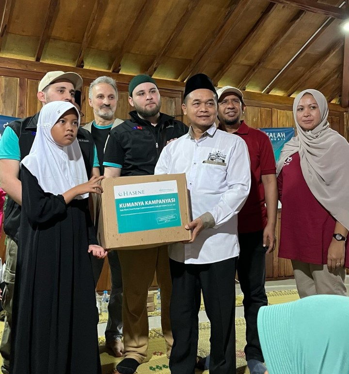 Kegiatan dimulai dengan penyerahan bantuan sembako kepada anak-anak yatim dan keluarga kurang mampu. Dalam suasana penuh keakraban, para penerima bantuan dan donatur saling berinteraksi, menciptakan momen yang penuh haru dan kebersamaan. Organisasi Hasene, yang bergerak di bidang sosial, pendidikan, dan keagamaan, didirikan oleh komunitas Muslim Turki di Eropa dan berbasis di Jerman, menunjukkan dedikasi yang tinggi dalam membantu masyarakat, dengan harapan dapat meringankan beban mereka.