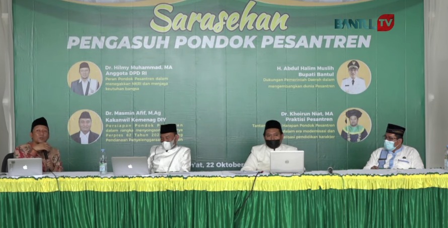 Pernyataan tersebut disampaikan oleh Dr. H. Hilmy Muhammad, M.A. dalam acara Sarasehan Pengasuh Pondok Pesantren Kabupaten Bantul dalam rangka Hari Santri Nasional 2021 Kabupaten Bantul di Institut Ilmu Qur’an (IIQ) An-Nur, Ngrukem, Pendowoharjo, Sewon, Bantul, pada Jumat (22/10/2021) sore.