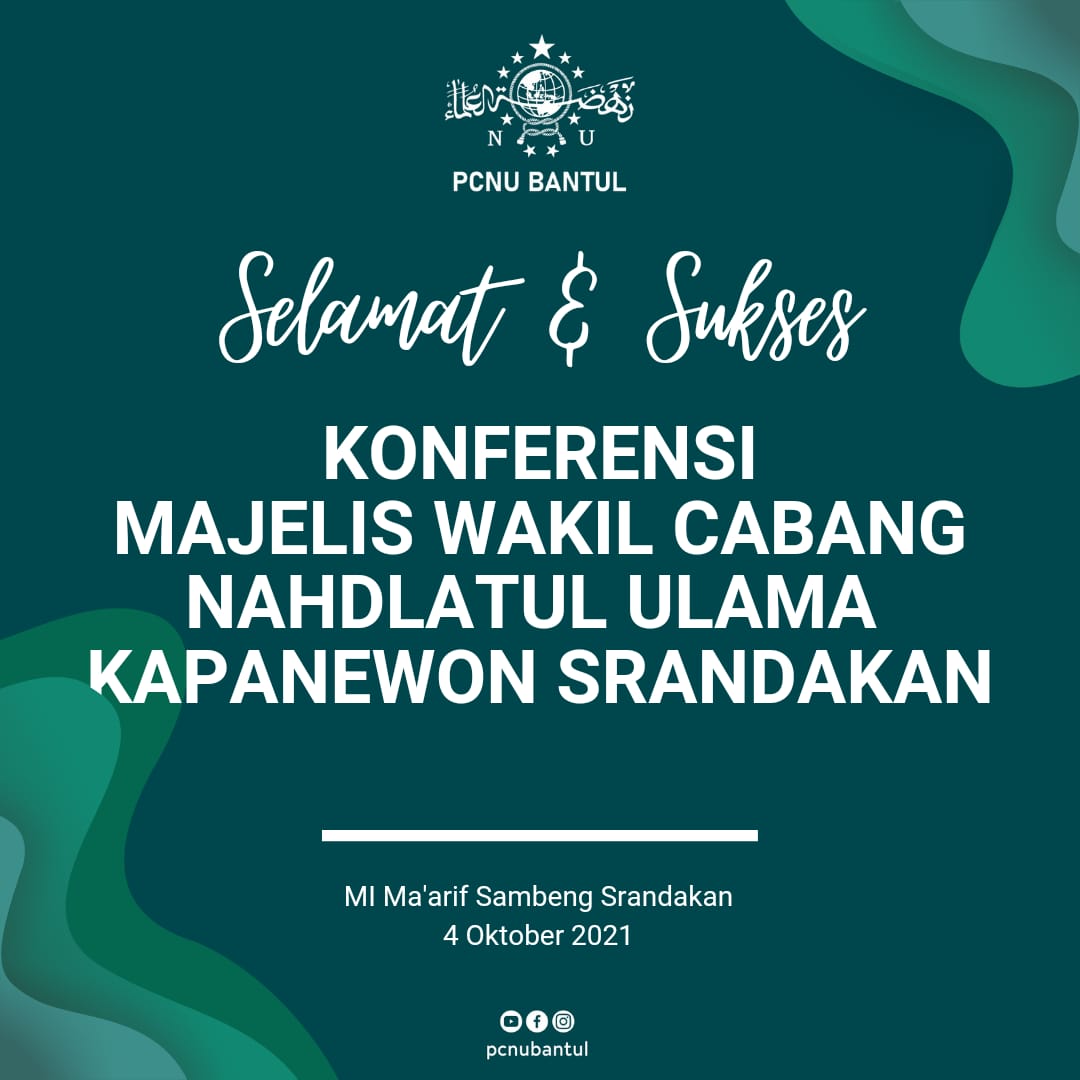 Hari ini, Ahad (4/10) MWCNU Kapanewon Srandakan menyelenggarakan Konferensi MWC. Forum tertinggi organisasi NU di Kapanewon Srandakan ini akan dilaksanakan di MI Maarif Sambeng Srandakan.