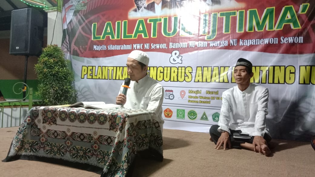 Lailatul Ijtima merupakan kegiatan rutin pengurus MWC NU Sewon, Banom NU, dan warga NU Kapanewon Sewon dalam forum silaturahmi yang penuh kehangatan, kali ini bertempat di Masjid Nurul Hasanah, Mredo Wetan Rt 03, Kalurahan Bangunharjo, Sewon, Bantul, Rabu (22/11/2023). Lailatul Ijtima kali ini terasa istimewa dengan pelantikan Pengurus Anak Ranting NU padukuhan Mredo dan Ngoto Bangunharjo.