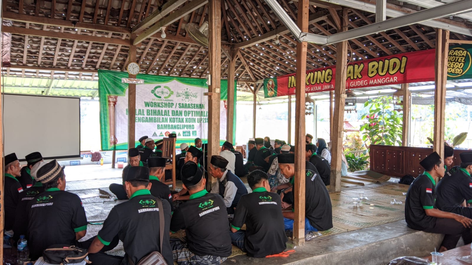 Raker yang digelar dengn mengusung tema “Optimalisasi Pengambilan Kotak Koin UPZISNU Bambanglipuro” dipandu oleh H. Agus Prihanto.