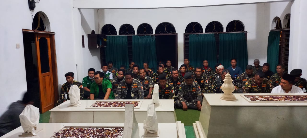 Pimpinan Ranting Ansor Wonokromo Pleret menyelenggarakan ziarah ke Makam Mbah Marzuqi Giriloyo dan Syech Abdul Karim di Makam Giriloyo, Sabtu (16/10).