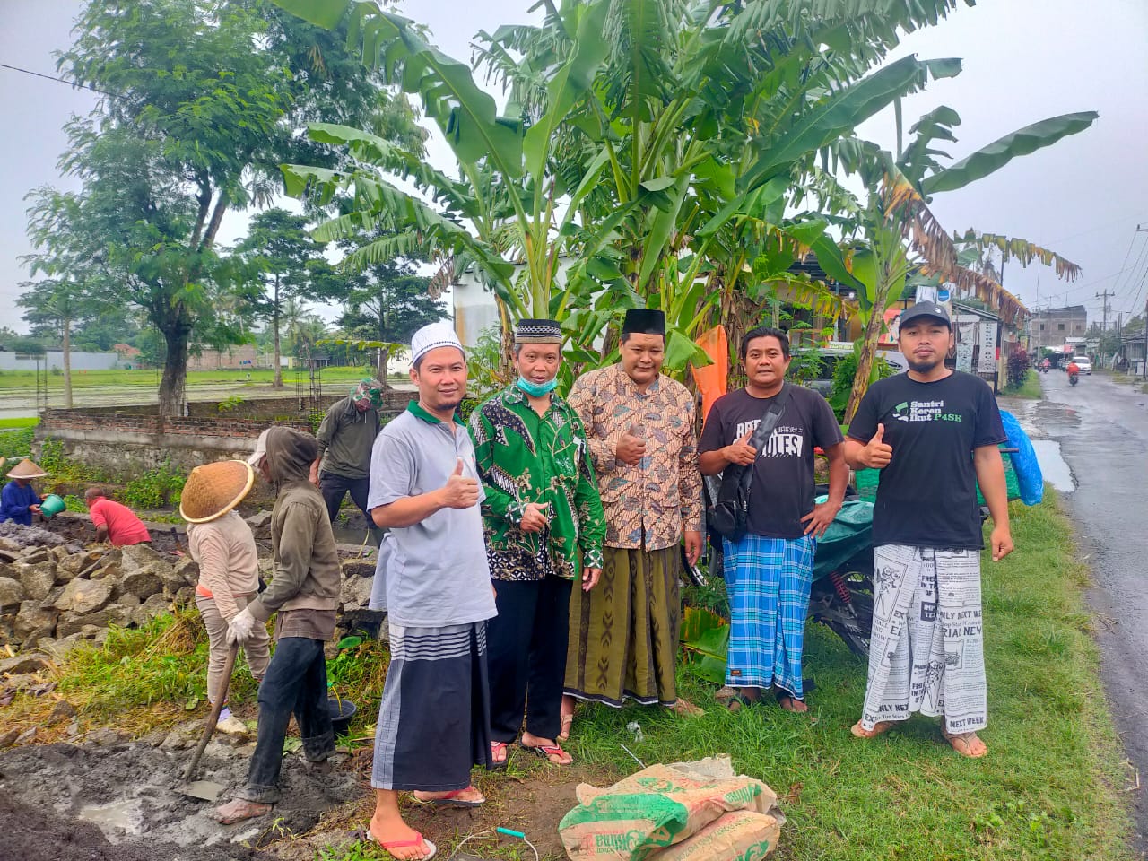 "Bismillahirrohmanirrohim, pagi ini meskipun cuaca hujan semoga menjadi berkah bagi seluruh warga NU Sewon dan seluruh donatur dengan memulai pembuatan pondasi keliling di tanah yang nantinya berdiri gedung Aswaja Center NU Sewon. Setelah pembuatan pondasi keliling, Insyallah dilanjutkan dengan proses pengurukan sehingga di tahun 2022, kita bisa mulai membangun central gerakan Aswaja NU Sewon di lokasi ini,' ujar Ketua Tanfidziyah MWCNU Sewon, Kiai Nurhidayat, kepada nubantul.or.id.