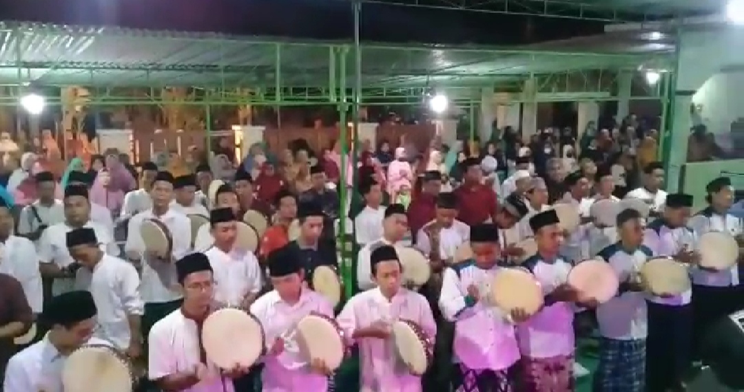 Lantunan Sholawat Nabi oleh tim gabungan Kelompok Hadroh se-Kalurahan Panjangrejo menggema merdu di halaman Masjid Al-Munawaroh, Dusun Krapyak Kulon, panjangrejo, Pundong, Bantul, Ahad (4/9/2022) malam.