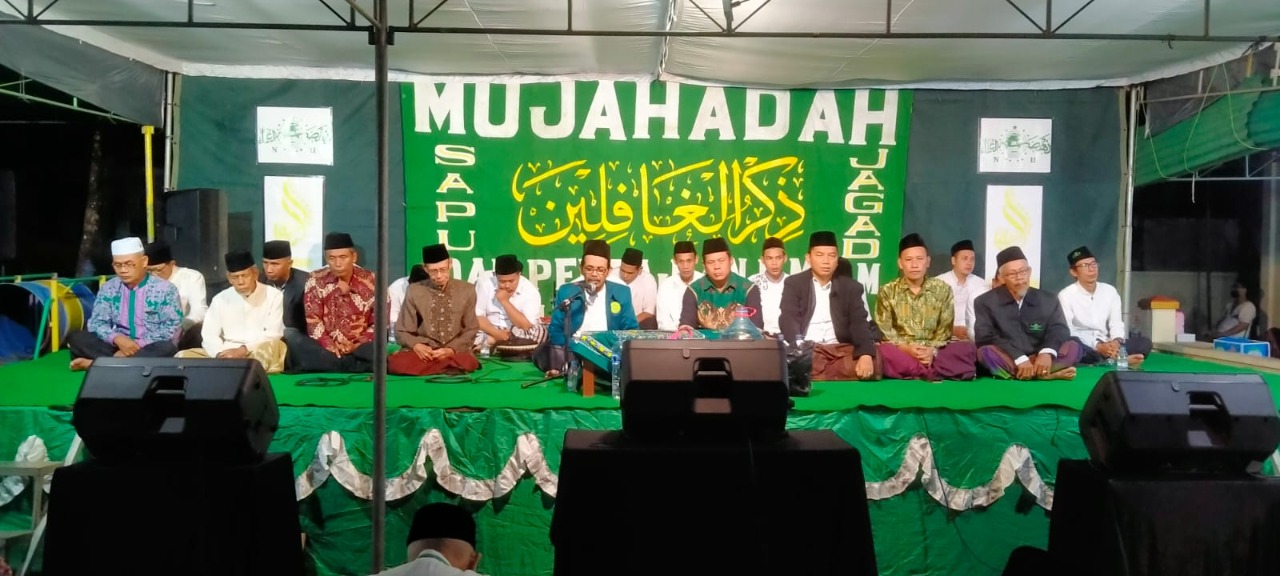 Pengurus Majelis Wakil Cabang Nahdlatul Ulama (MWC NU) Kapanewon Pundong dan Takmir Masjid Ar-Rahmah Nglembu menyelenggarakan Mujahadah dan Istighotsah Dzikrul Ghofilin di Komplek Madrasah Diniyah Ar-Rahmah Dusun Nglembu, Panjangrejo, Pundong, Bantul, DI Yogyakarta, Sabtu (8/10/2022) malam.