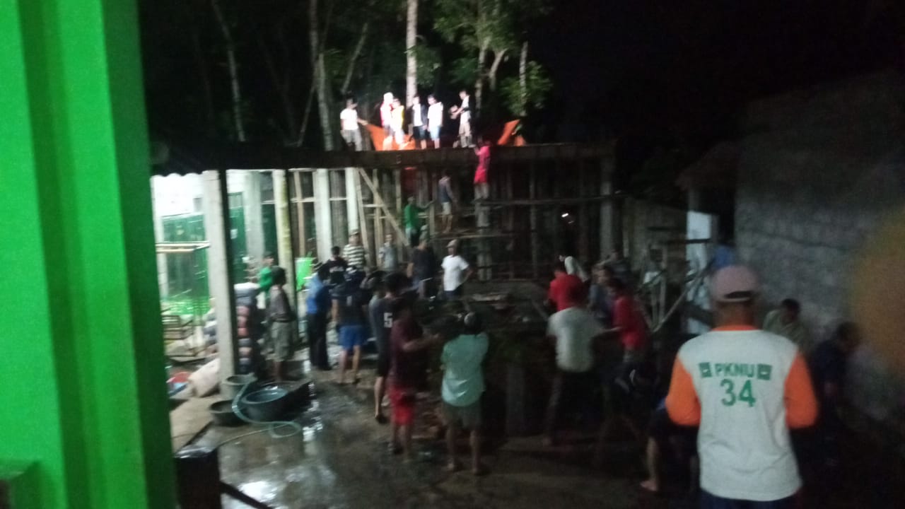 Pengurus Ranting NU Argosari Sedayu Bantul gotong royong dalam rangka membangun gedung PAUD Al Ikhsan, Jaten Argosari Sedayu Bantul, Senin (5/6/2022) malam yang diikuti sekitar 40 relawan. PAUD Al Ikhsan merupakan salah satu lembaga pendidikan yang dimiliki PRNU Argosari Sedayu.