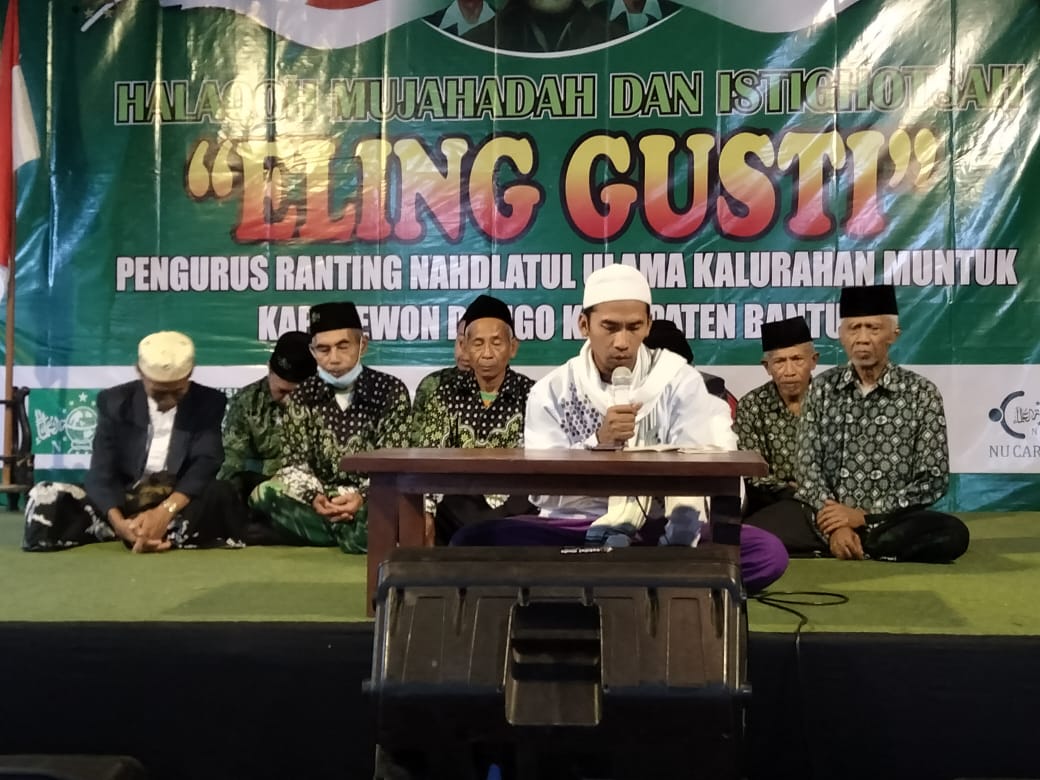 Pengurus Ranting Nahdlatul Ulama (PRNU) Kalurahan Muntuk menyelenggarakan mujahadah dan istighotsah yang bertajuk Eling Gusti, Rabu (18/01/2023) malam di Kantor Ranting NU Kalurahan Muntuk, Dlingo, Bantul, DI Yogyakarta.