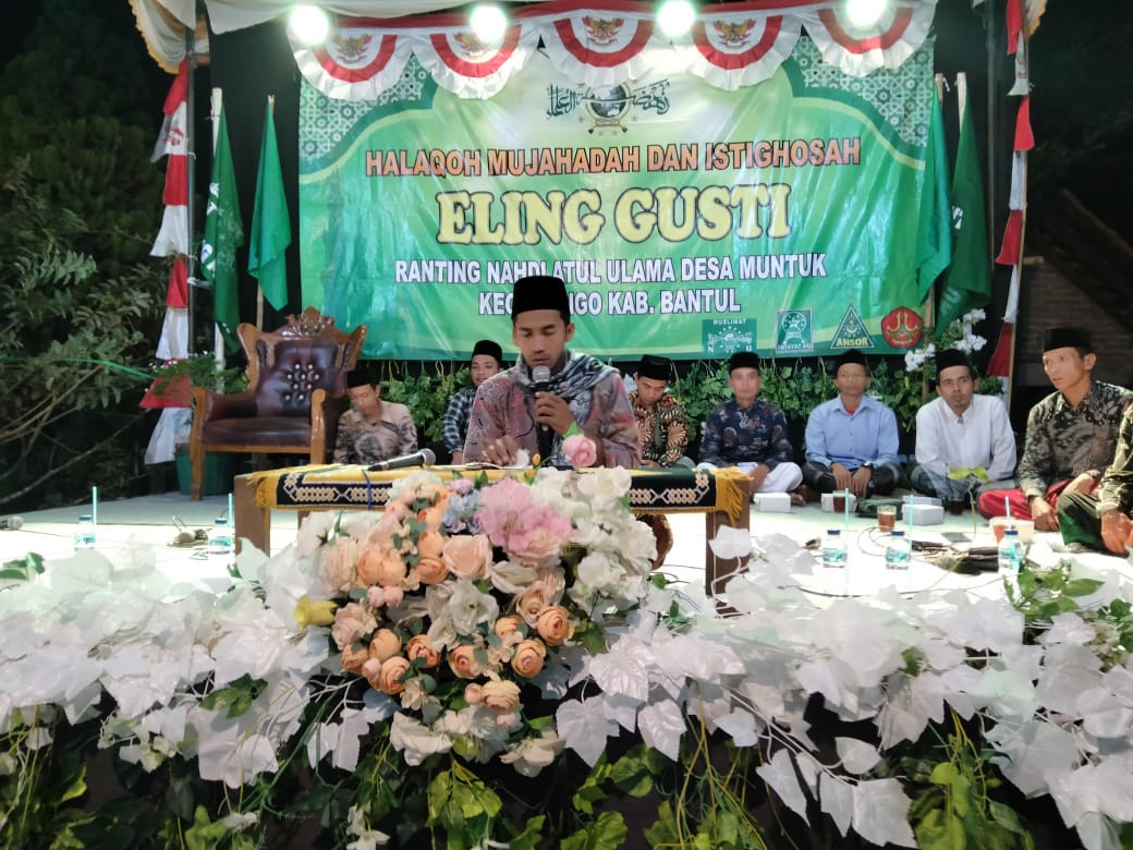 Mujahadah yang bertajuk "Eling Gusti” ini diselenggarakan setiap selapanan (40 hari) yakni setiap malam Kamis Kliwon. Acara dihadiri para kasepuhan NU Dlingo, jajaran Pengurus Tanfidziyah MWC NU Dlingo, Pengurus PRNU Muntuk, para pamong Kalurahan Muntuk, dan jamaah sekitar.