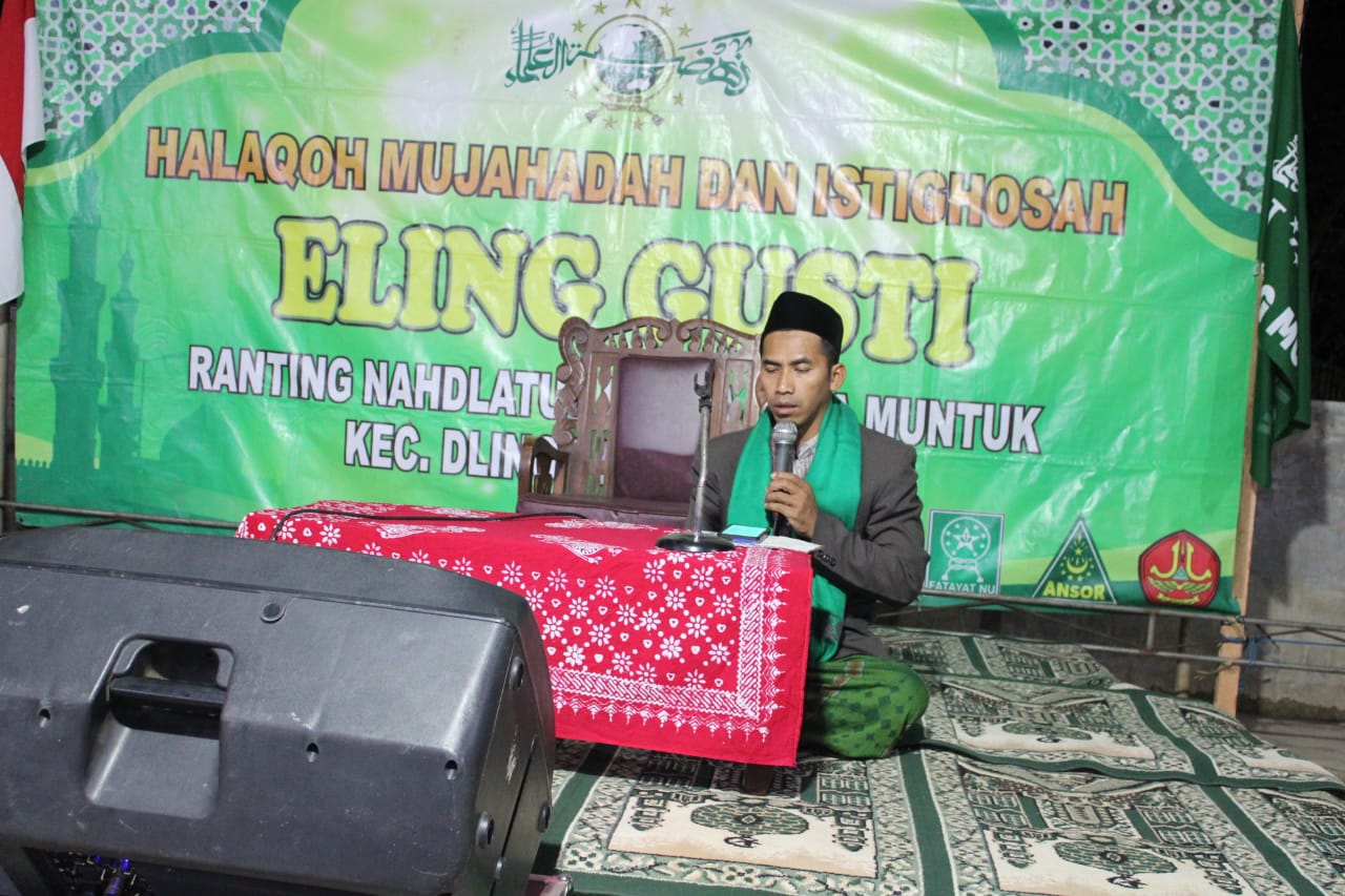 Pengurus Ranting Nahdlatul Ulama (PRNU) Kalurahan Muntuk menyelenggarakan kegiatan Lapanan Mujahadah dan Istighotsah Eling Gusti di Masjid Al Huda, Sanggrahan I, Muntuk, Dlingo, Bantul, DIY, Rabu (05/10/2022). Acara yang digelar di bulan Rabiul awal ini, sekaligus dalam rangka memperingati Maulid Nabi Muhammad SAW.