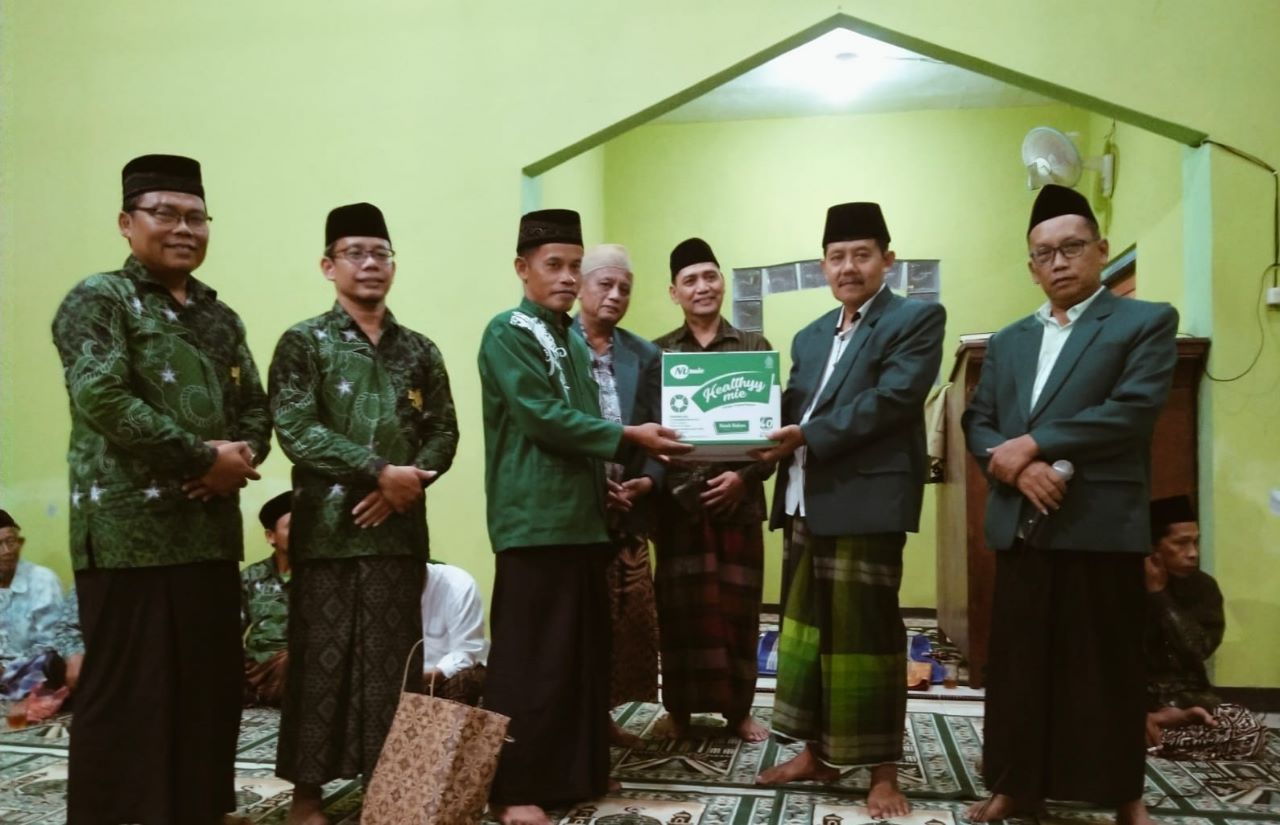Di akhir acara, PCNU Bantul menyerahkan NUMie dan bingkisan lainnya kepada Pengurus MWCNU Pundong dan Takmir Al Miftah Tapang, Srihadono, Pundong. (red015)