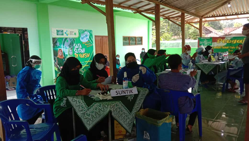 Vaksinasi massal ini menyasar seluruh Pengurus Muslimat NU se Kabupaten Bantul serta warga masyarakat sekitar. Kegiatan ini dilaksanakan oleh Tim Medis Muslimat Bantul dibantu oleh Pengurus Muslimat NU. (ois)