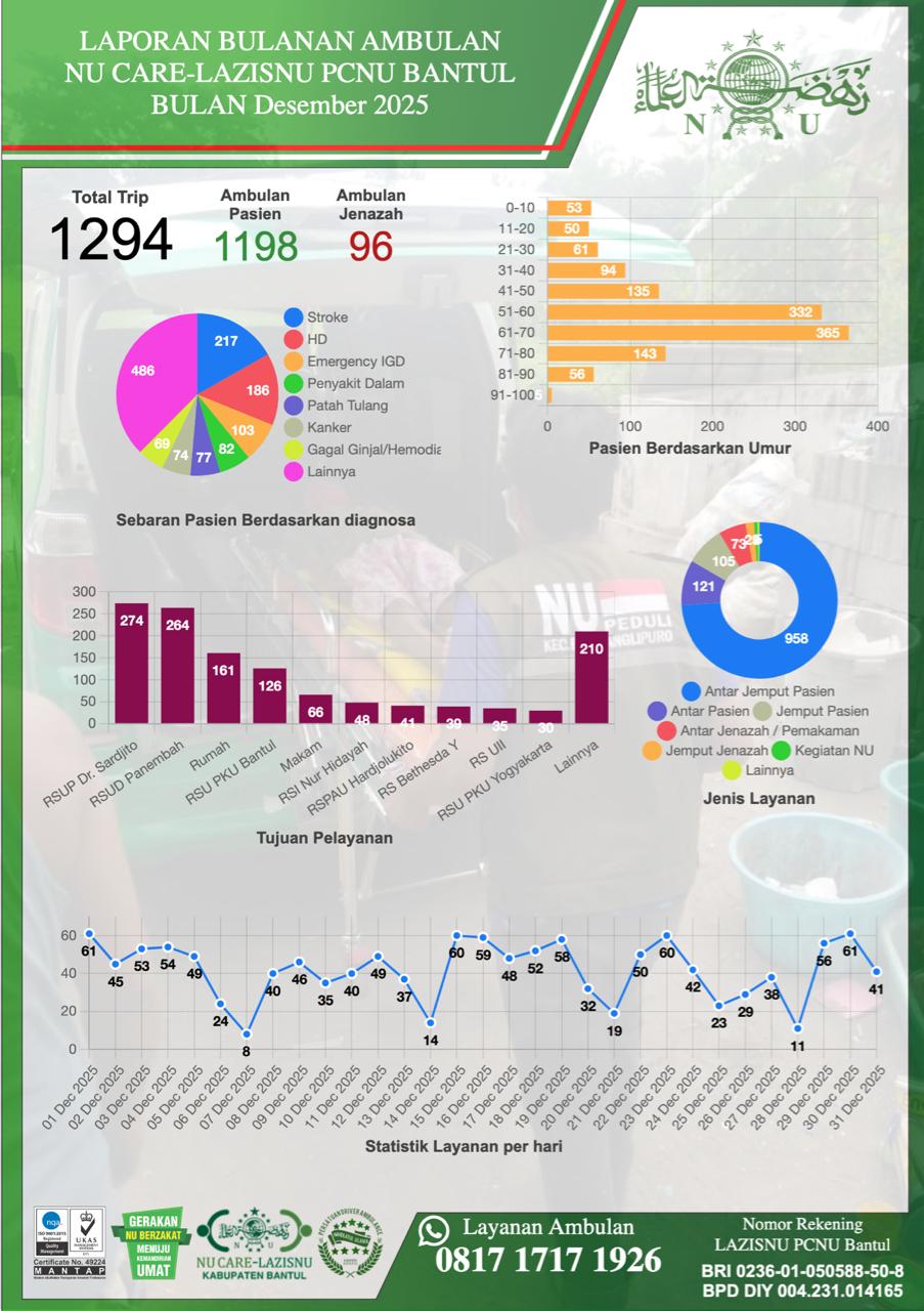 NU Care–LAZISNU UPZIS Kapanewon Pundong, Bantul, merilis capaian program sosial Santunan Anak Yatim Tahun 2025, Selasa (30/12/2025). Sepanjang tahun ini, lembaga filantropi Nahdlatul Ulama tersebut te...